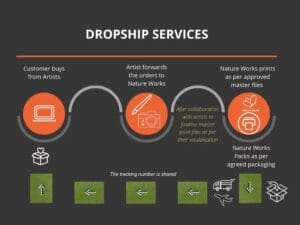 No upfront costs! We don’t print anything until you make a sale. You won’t have to guess ahead of time what will sell and you can list as many files and size options as you want on your website/ ecommerce platform.